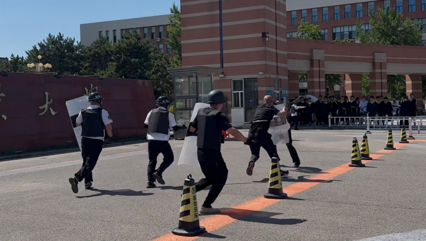 为进一步提升校园安保队伍应对突发事件的处置能力,切实保障师生生命财产安全,6月20日下午学校党委保卫部(公安处)在中央大街校门开展了反恐防暴应急处置演练。本次演练以“校外人员持刀强闯校园”为模拟场景,通过实战化操作检验校园安保应急机制的有效性和可行性。