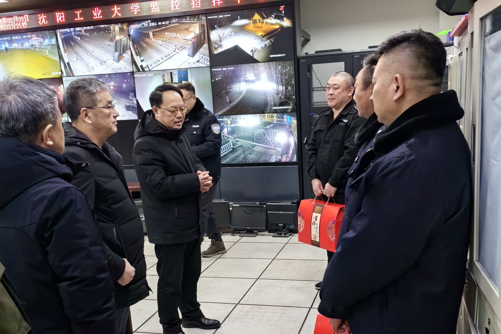 2月9日,正值中华民族传统节日除夕,新春的校园宁静祥和,在这辞旧迎新、万家团圆的中华民族传统节日,我校仍有近百名教职员工坚守工作岗位,为学校安全运转提供服务保障。晚上8点,校党委书记贾玉明、校长张珂、副校长聂鹏、柯丽带着学校的关怀和牵挂,走访慰问了春节期间坚守岗位的教职工和在沈留学生,向他们致以新春的问候和美好的祝愿,并向全校师生员工和海内外校友拜年,致以新春的祝福。党政办公室、公安处、后勤集团等部门负责同志参加慰问。