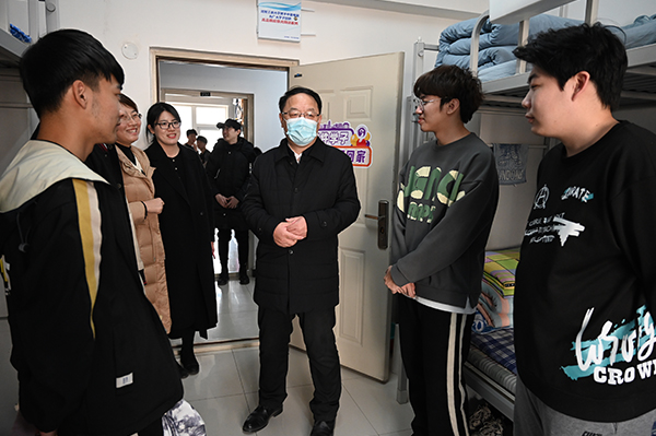 在其他学生宿舍楼,校领导们实地察看楼内环境设施,及时解决发现的问题,深入同学之中,亲切询问学生假期学习生活及身体情况、返校后的感受和新学期的规划,倾听学生和家长对学校的建议,鼓励同学们珍惜大学时光,砥砺奋进新学期。交谈过程气氛温馨、融洽,同学们表示倍感亲切,深受鼓舞。