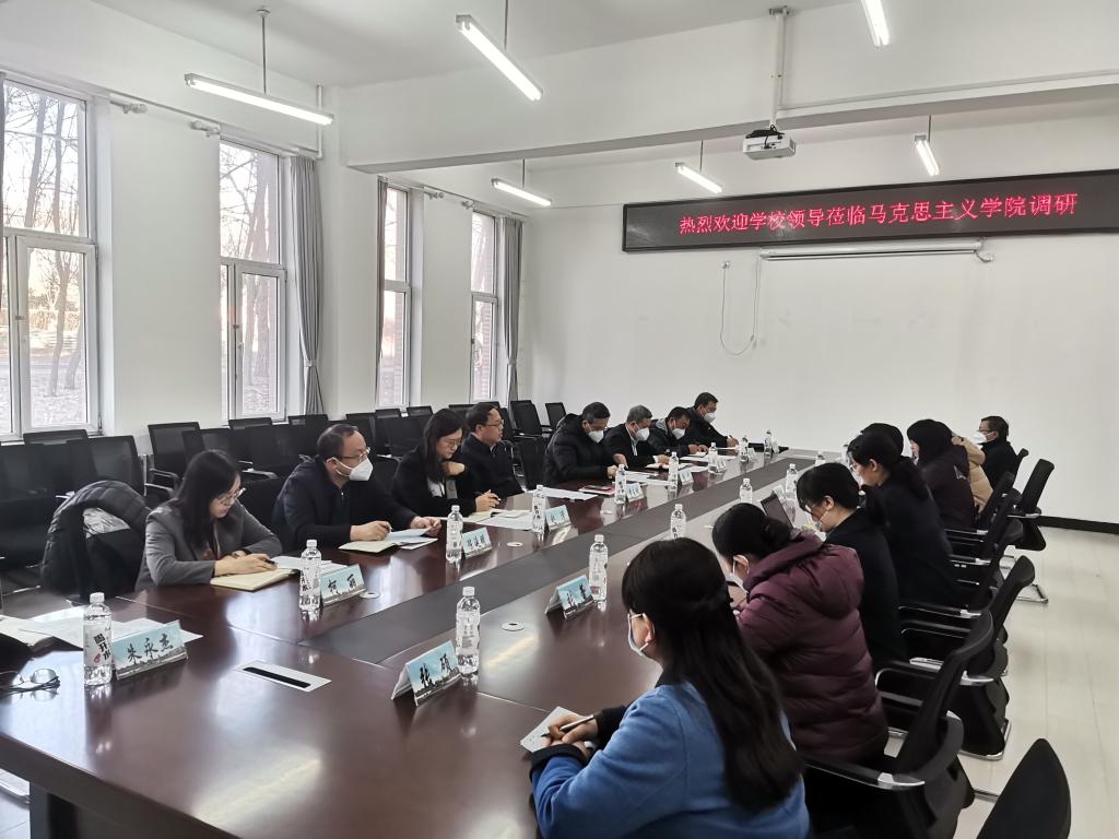 2月13日下午,党委书记贾玉明带领学校全体领导班子成员到马克思主义学院调研,详细了解学院建设情况,现场交流工作破解难题,指导学院内涵建设。
